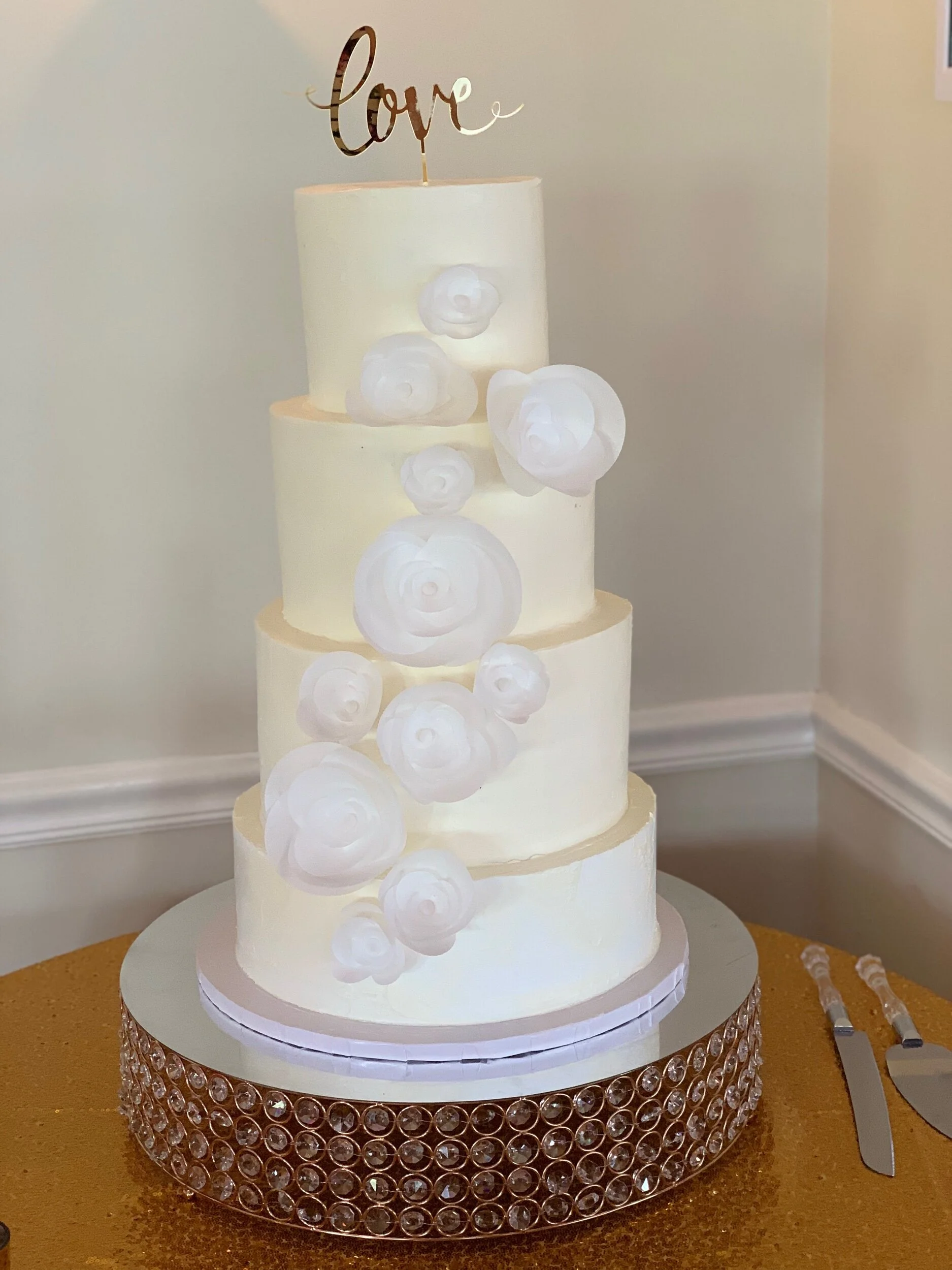Congratulations on your engagement! We would be happy to create a custom masterpiece for your big day! We work one on one with couples to coordinate flavors, colors, design and theme to make sure your wedding cake is perfect for your big day. We offer tastings by appointment only. With a minimum of one weeks notice you may choose up to four flavors of cake, filling and frosting to sample for a small charge, We are willing to work within your budget to create your dream wedding cake. Please send us a message through our contact page to inquire pricing details about weddings and the options we offer. Keep in mind every cake is unique and pricing varies depending on number of servings, cake flavor, and design. We look forward to working with you!